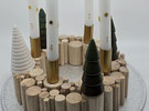 Outre la laine et les aiguilles, des essences de bois (chêne, sapin , noisetier, frêne, tilleul...) ont aussi leur place dans mon atelier, où naissent lampes et objets décoratifs...