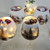La lumière se reflète sur le verre et les ornements, créant un effet scintillant et féerique.